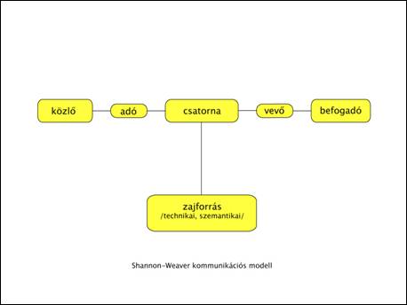 Shannon és Weaver 1949-ben alkotja meg egyszerű, lineáris telekommunikációs modelljét, amely a kommunikációt a üzenetátadás folyamatának ábrázolja. A modell a technológiai megoldásokat tartja szem előtt és három problémát vet fel: