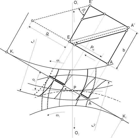 és kimondható a feltétel. Ahhoz hogy egy fogazat kapcsolódás megtartsa az áttételi állandóságát az a feltétele, hogy a közös fogmerőleges bármely érintkezési pontnak megfelelően áthaladjon a főponton.