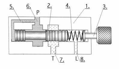 8. Az ábrán a tolattyús nyomáshatároló szelep rajzát látja. Nevezze meg a részeit!