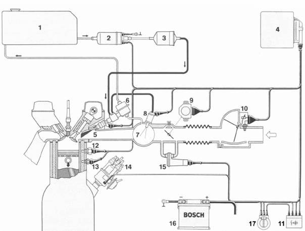 L-típusú benzinbefecskendezési rendszer általános felépítése, részei |